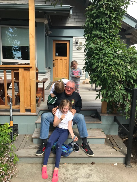 See Sandy and Kerry spreading a plant appetizer. I mowed an acre on the riding mower and weed-wacked the driveway and walkways. Friday night Rumi and Fisher had a sleep over with us. Saturday night Teo and Fisher had a sleep over. Sunday we moved from the West Shore property back to the Guemes Resort. This time we are in Cabin 2. And, Fisher is staying with us all week until he returns to Portland. We have been playing a card game every night where Fisher wins and we loose. Although I did come back to win last night before Fisher returned to Portland.